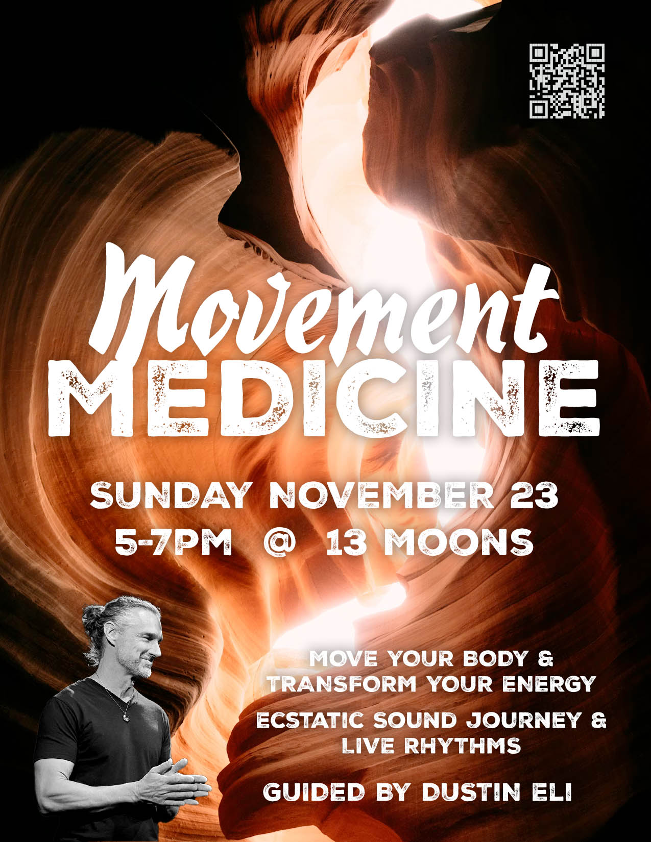 Movement Medicine is a live ecstatic sound journey woven with deep rhythms, intuitive flow, and the freedom to move exactly as your body needs.